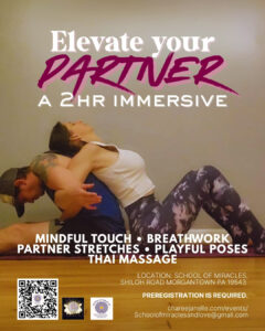 A 2-hour immersive workshop designed to melt away stress, awaken presence, and invite joy back into your relationships. Whether you come with a friend, family member, or beloved, this experience will guide you through mindful touch, partner stretches, playful poses, and Thai massage techniques that nourish body, mind, and soul.